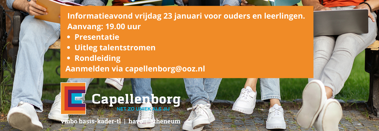 Op Capellenborg staan jouw talent en jouw toekomst centraal. Waar ben jij goed in? Waar liggen jouw talenten? Wat wil je worden? Welk onderwijstype past daar het beste bij? Hoe helpen we jou om de vaardigheden te ontdekken die jij nodig hebt?